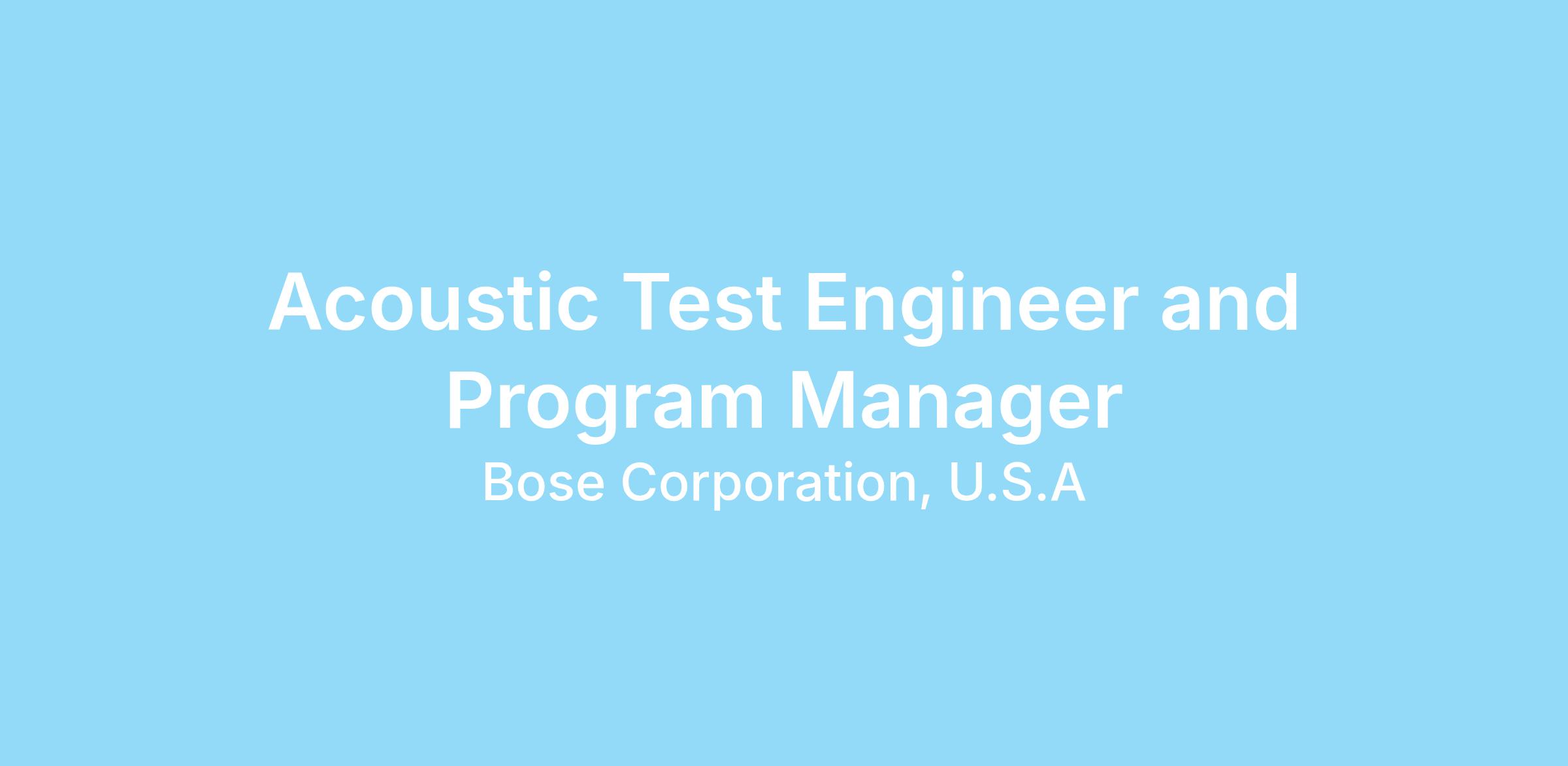 Our team is growing, and we are looking for a skilled engineer with expertise in acoustics, automated audio testing, and program management to join us. In this role, you will combine technical proficiency with strong organizational skills to manage acoustic test programs, track progress, and ensure successful deployment of testing solutions in manufacturing.
