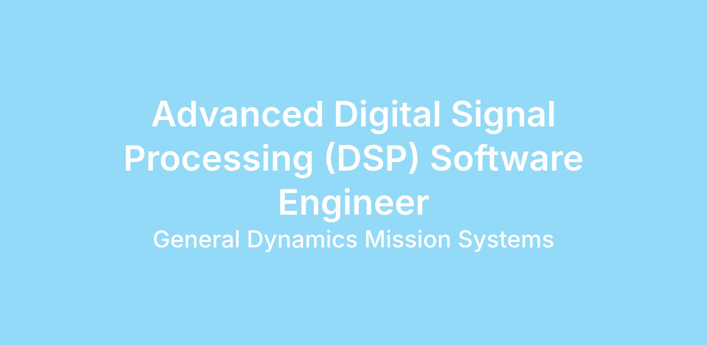 We are seeking a highly skilled and experienced Senior Digital Signal Processing (DSP) Software Engineer to join our dynamic team focused on undersea sensor systems. In this role, you will be responsible for designing, developing, and implementing advanced DSP algorithms and software solutions for undersea sensor applications. You will work closely with cross-functional teams to deliver high-performance, reliable, and scalable DSP solutions that meet the needs of our customers.