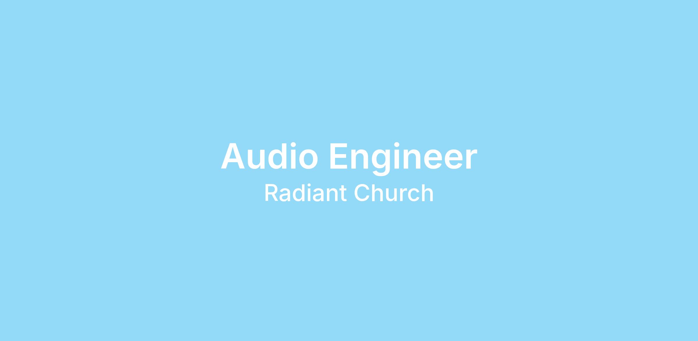 The Audio Engineer provides professional live and broadcast audio engineering while actively developing and equipping volunteer production teams. This role helps cultivate a culture of excellence, growth, and servant leadership within the production ministry, enabling the Production and Worship teams to move further and faster into the next season God is leading Radiant Church.