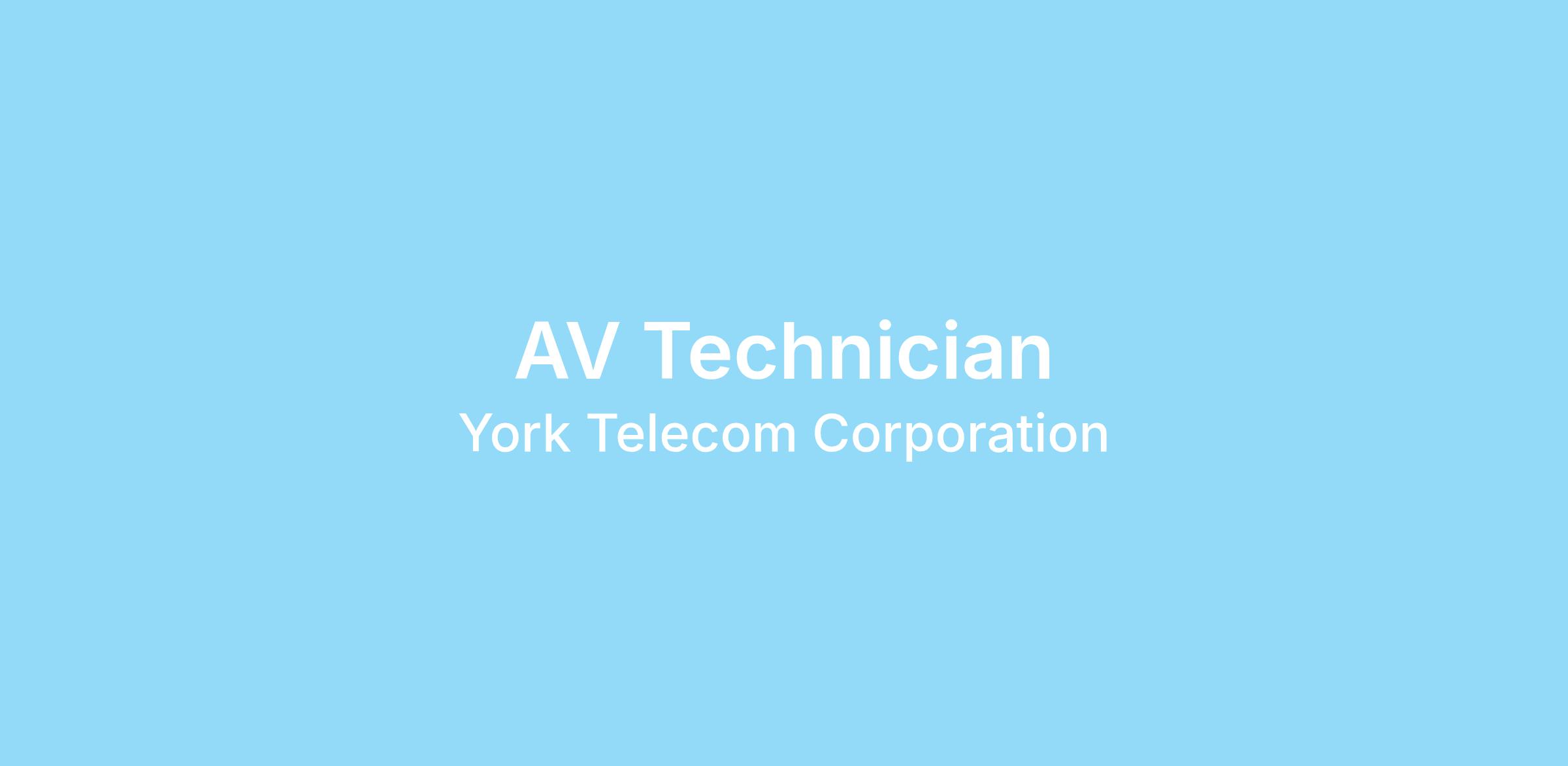 Yorktel is currently seeking an on-site AV Technician who will play a key role in the support of the assigned customer. This position is client facing and must be professional with a strong customer service attitude. The AV Tech will work with the Site Lead and other techs assigned to their site to provide excellent support of the clients.
