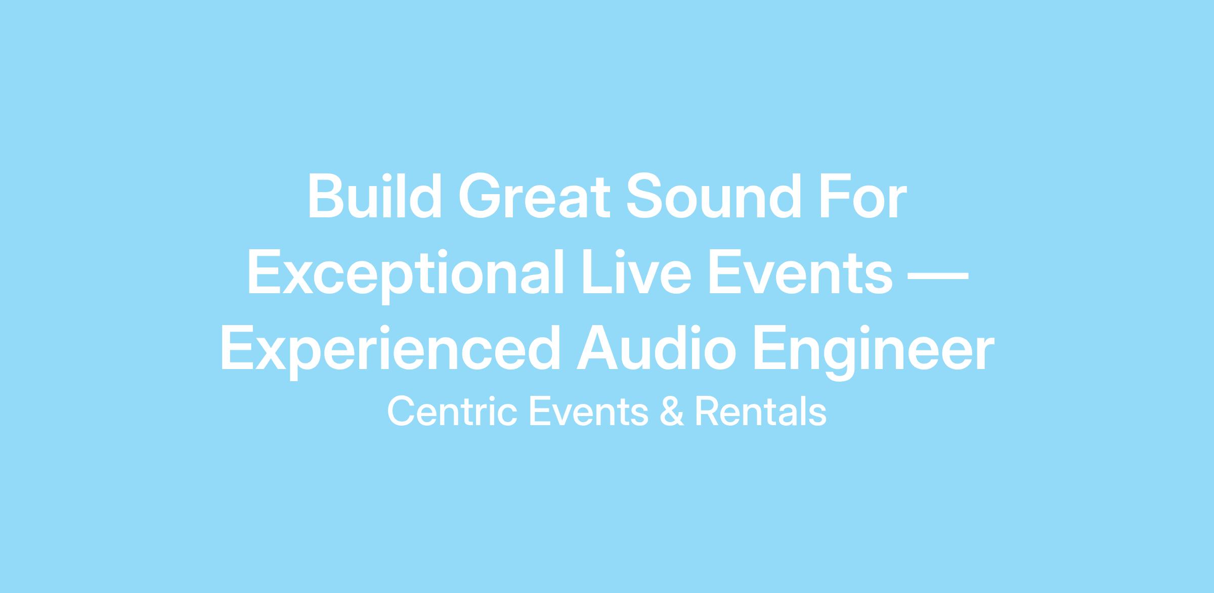 Centric Events is seeking an experienced Audio Engineer to help deliver clear, confident sound across corporate events, conferences, and live productions throughout Arizona.