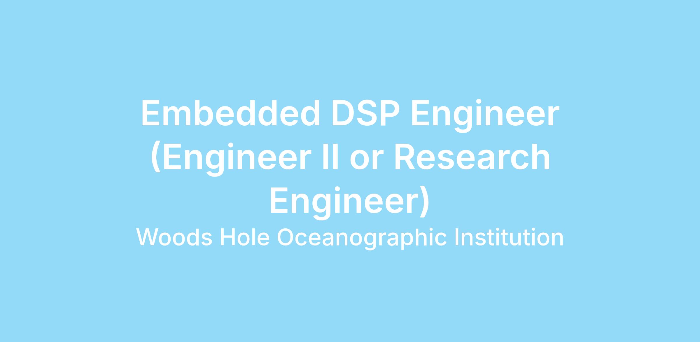 The Applied Ocean Physics and Engineering Department is recruiting qualified candidates for a position in digital signal processing in support of applied research and development of acoustic communications and related areas of underwater acoustics. The work will primarily involve development, implementation and maintenance of software and firmware for underwater acoustic modems and navigation systems.Job Description