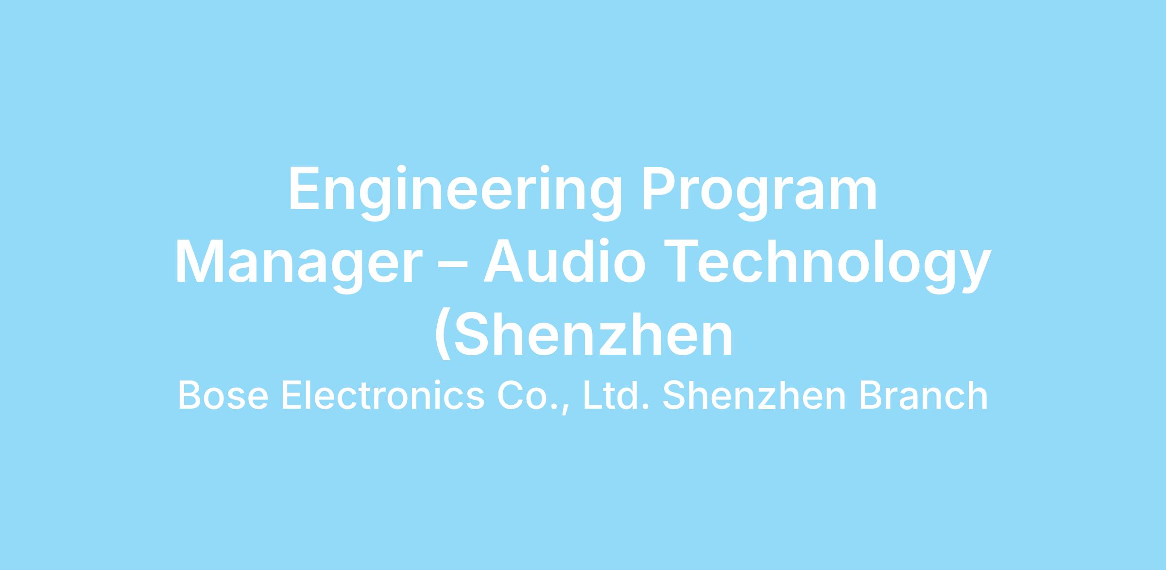 Engineering Program Manager – Audio Technology (Shenzhen)