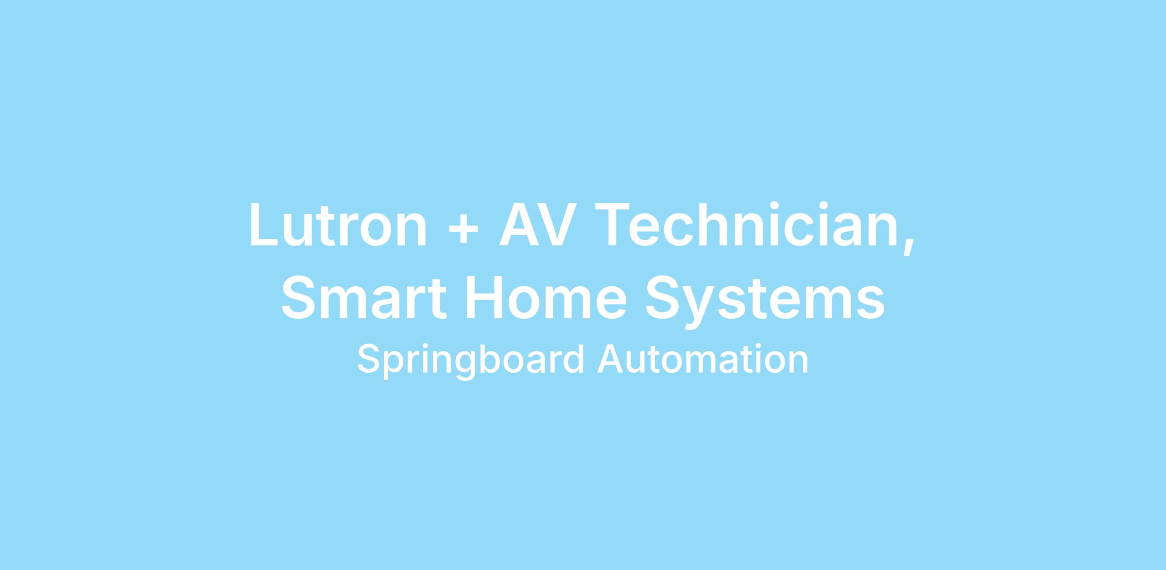 Lutron + AV Technician, Smart Home Systems