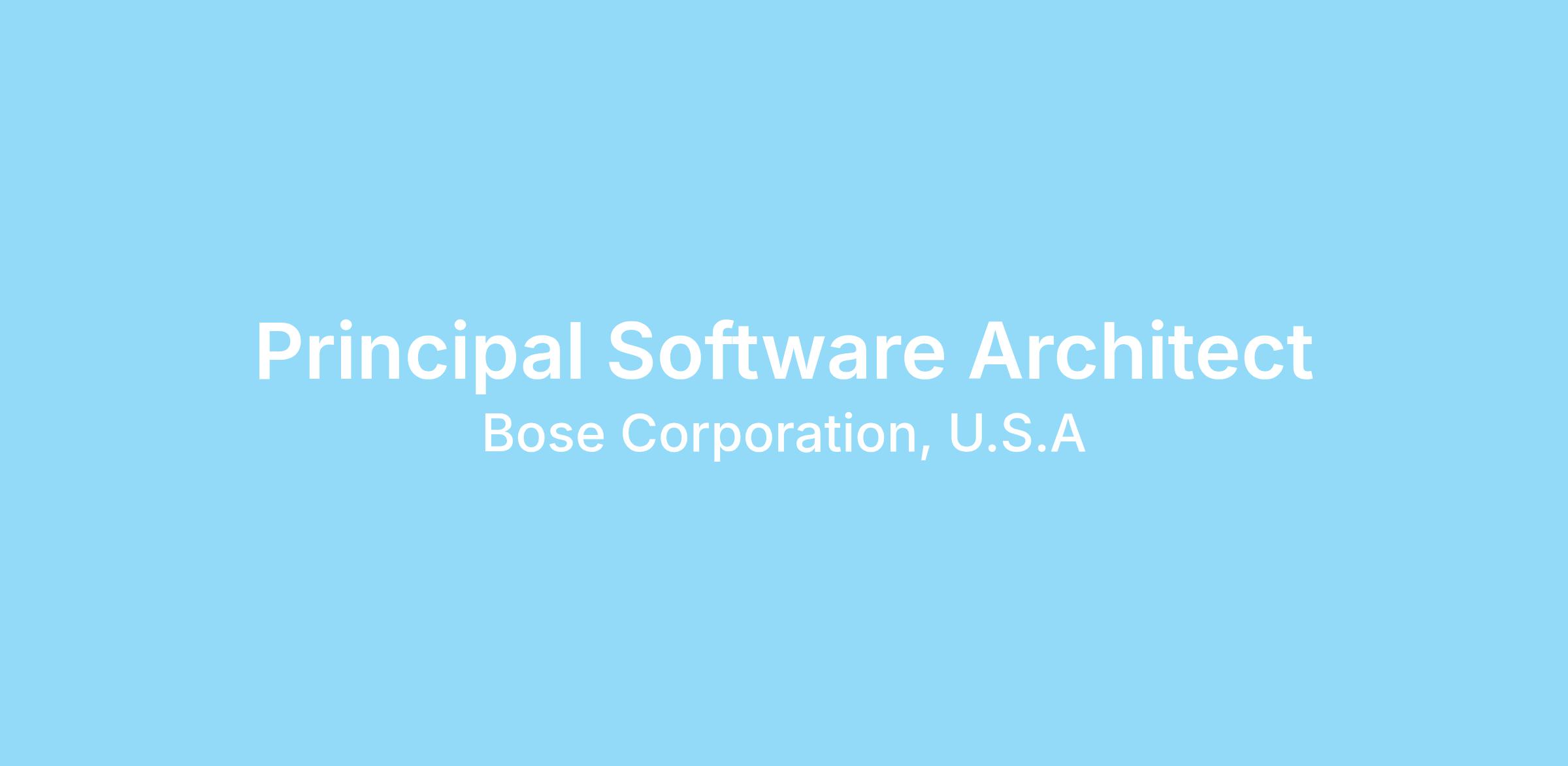 Luxury Engineering is looking for a Principal Software Architect who will be responsible for designing, deploying, and maintaining product-level structures with a focus on quality and scalability. Building on the Bose Corporation platform architecture, you will leverage your strong system-level thinking, deep embedded and connectivity expertise, and passion for robust, scalable products in the development of products across our portfolio. You will be supported by the corporate Systems Engineering, Architectures and Platforms group; product architects; and development hardware engineers.