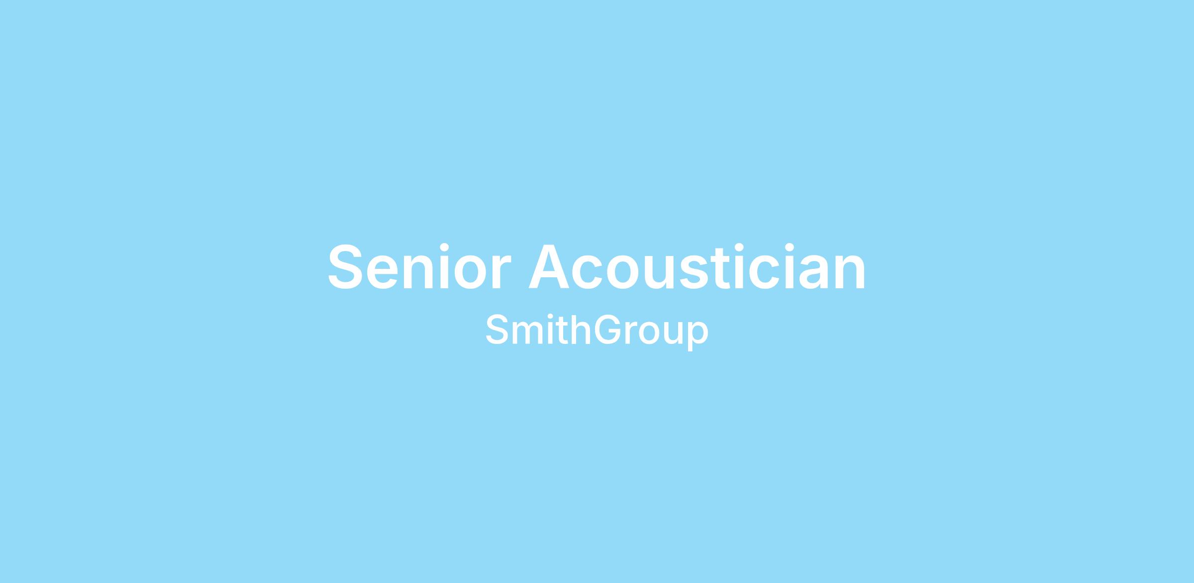 SmithGroup is looking for a Senior Acoustician to join our team. This position is ideally located within commuting distance of one of our offices, but remote options can be discussed.