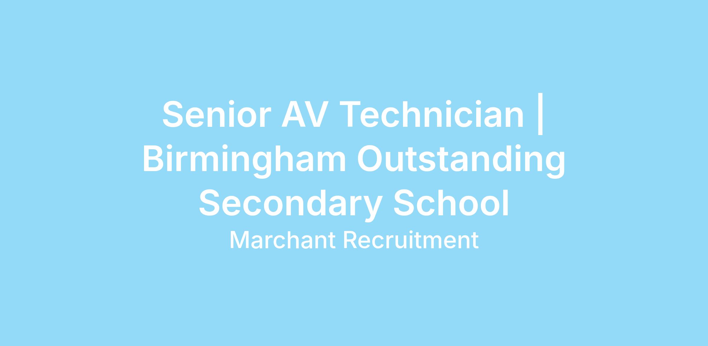 We are recruiting for a talented Senior AV Technician for a highly regarded Outstanding secondary school in Birmingham. This full-time, permanent position starts in April 2026 and offers a fantastic opportunity to lead the technical direction of the school's events. We are seeking an enthusiastic professional who can encourage high standards through meticulous preparation, contributing to a scholarly and well-ordered school environment.