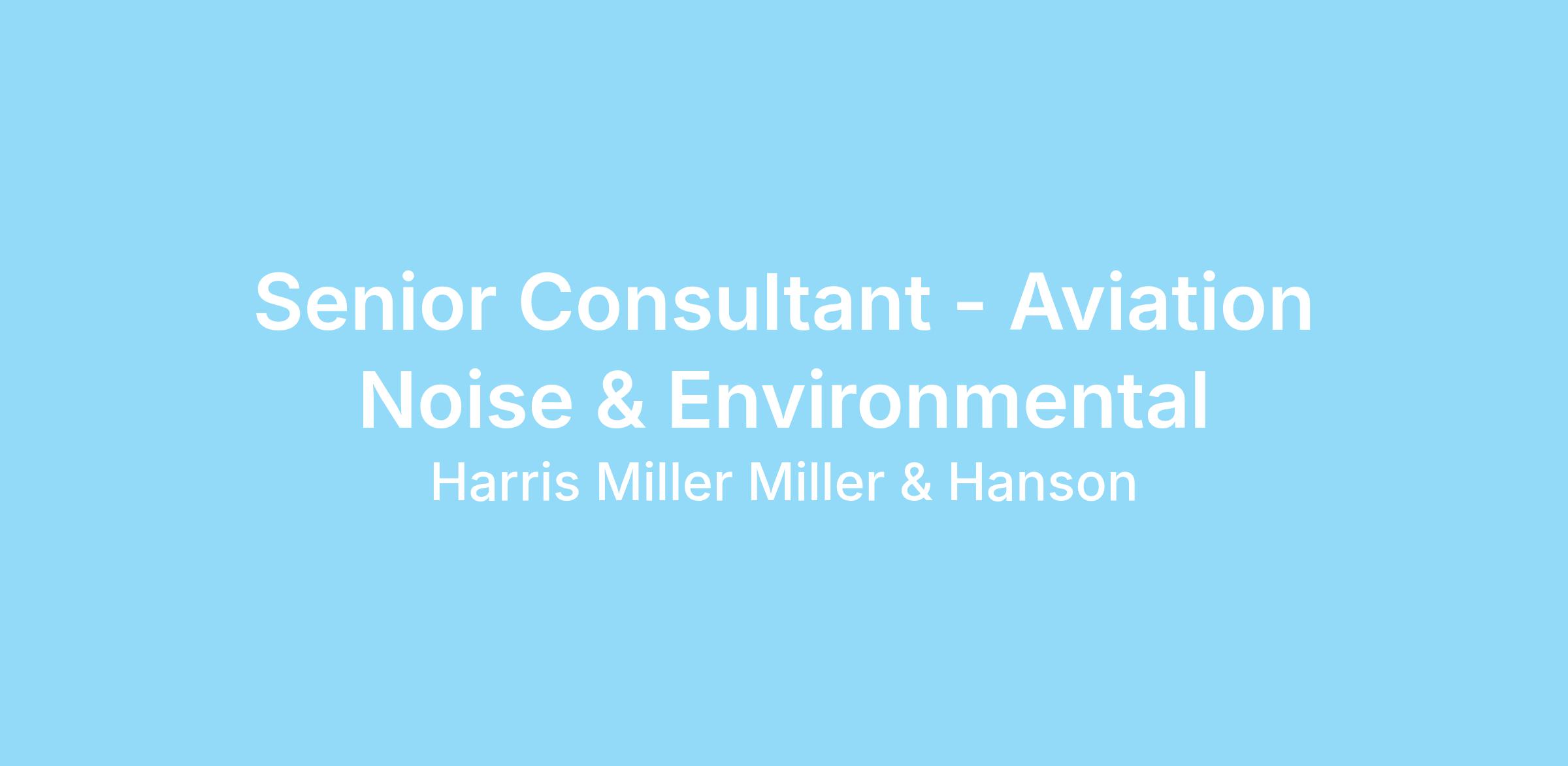 Harris Miller Miller & Hanson Inc. (HMMH), a leader in transportation environmental consulting, seeks a Senior Consultant to join our growing Aviation Environmental & Sustainability Group. This remote position is based in San Diego, CA, with the option to work from our San Diego office.