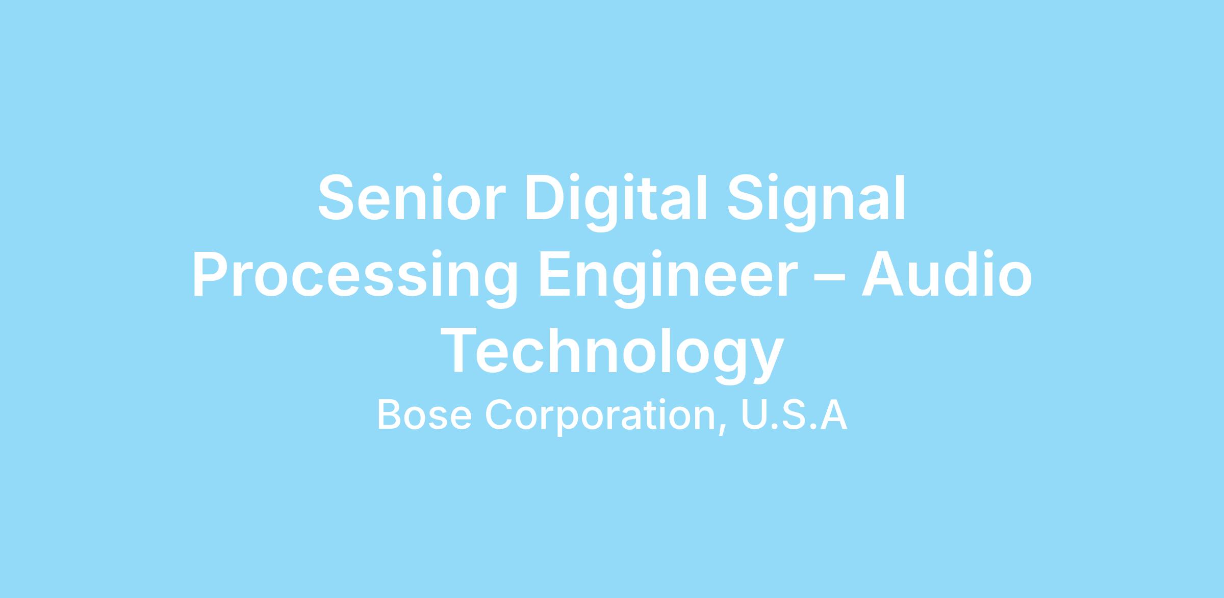 Senior Digital Signal Processing Engineer – Audio Technology