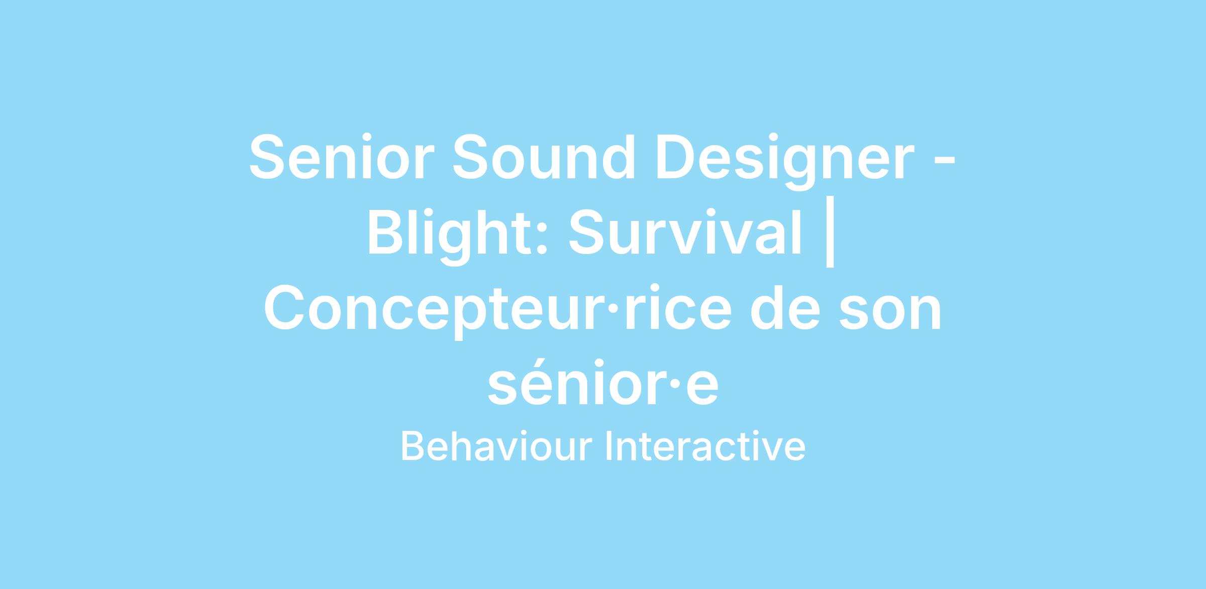 En tant que concepteur·rice de son sur le projet Blight: Survival, vous contribuerez à façonner l’expérience audio atmosphérique qui soutient le ton et l’univers du jeu. Votre travail participera à la création de paysages sonores immersifs, permettant aux joueurs de se sentir pleinement ancrés dans les environnements et les rencontres qu’ils explorent.