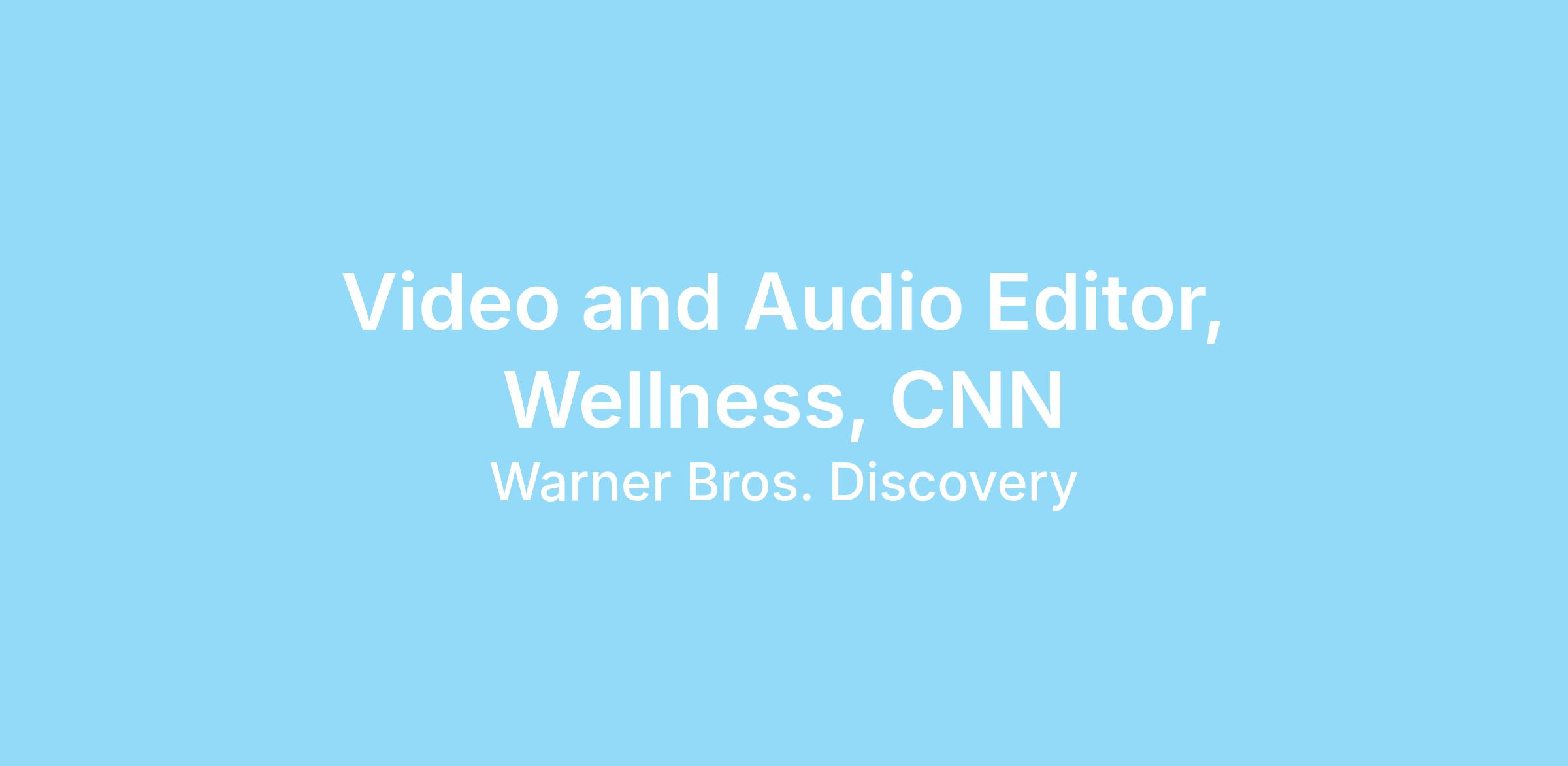 The Video and Audio Editor, Wellness plays a key role in shaping CNN’s emerging Wellness vertical through compelling, short-form video and audio storytelling. Working closely with producers and creative partners, this editor will help define the look, feel, and editorial voice of wellness content across CNN’s proprietary platforms and social channels.